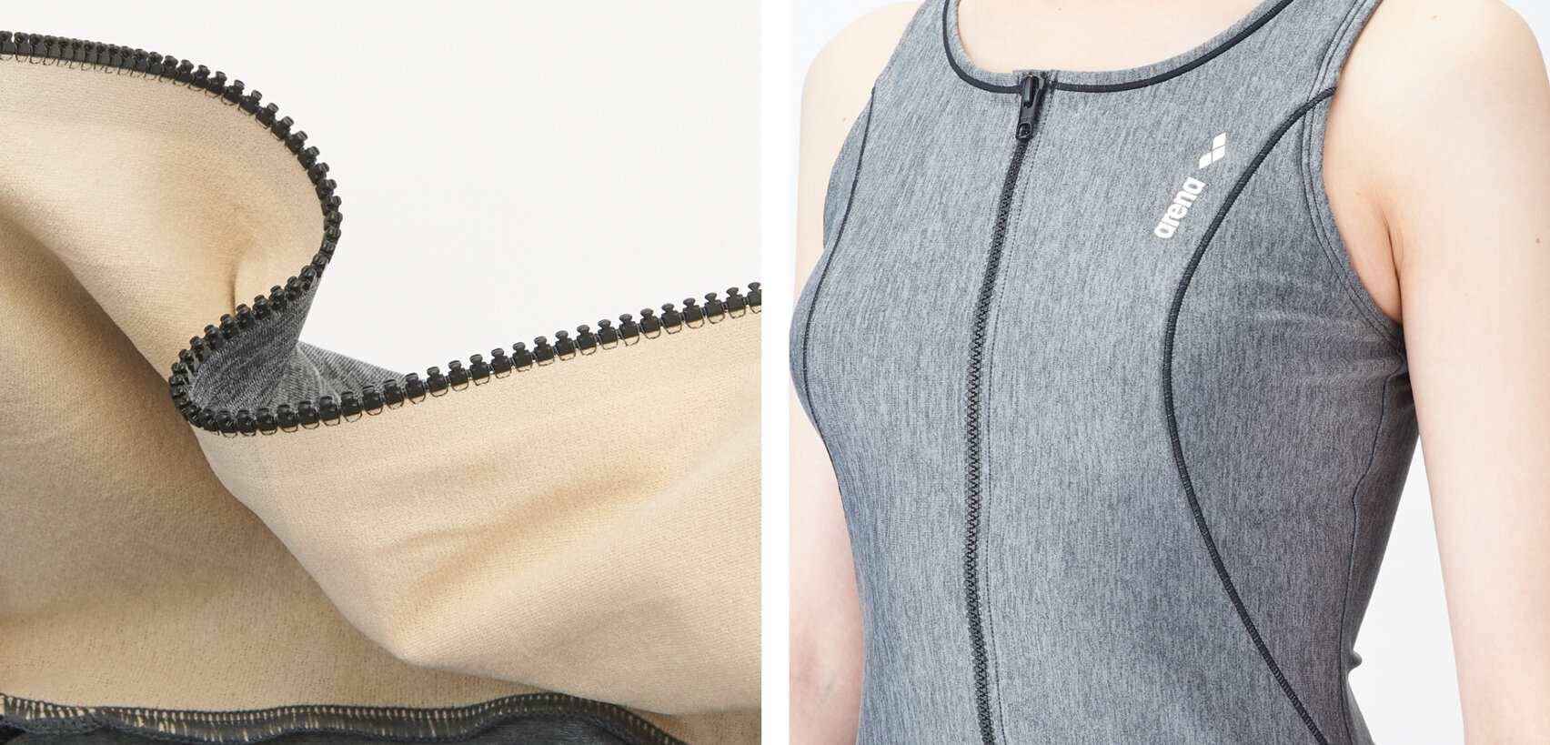 > The AiryString® tapeless zipper is designed for elements to be sewn directly onto fabric by a special machine.
