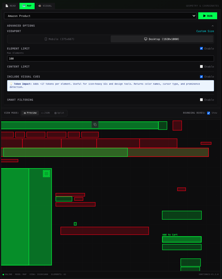 How the agent sees the page (map mode wireframe): [https://sentience-screenshots.sfo3.cdn.digitaloceanspaces.co...](https://sentience-screenshots.sfo3.cdn.digitaloceanspaces.co...)