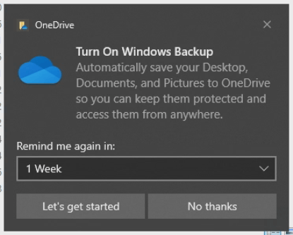 If you simply disable OneDrive without correctly uninstalling, the system will blast notifications at you with an ominous warning "You could lose data your system isn't backed up!"
