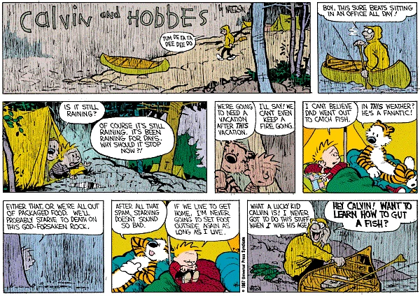 Immediately thought of, and could not stop thinking of the Calvin & Hobbes camping trip. https://static.wikia.nocookie.net/candh/images/3/30/8-16.gif...